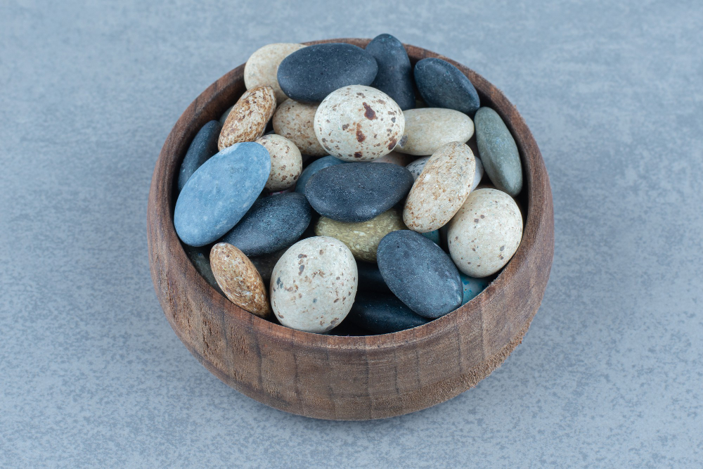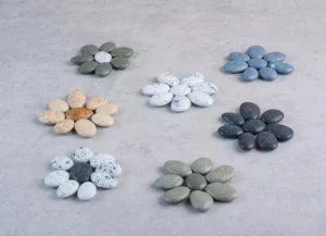 - 7 stones, 14 textures — Each stone has a different pattern on each side — ridges, dots, waves, grids